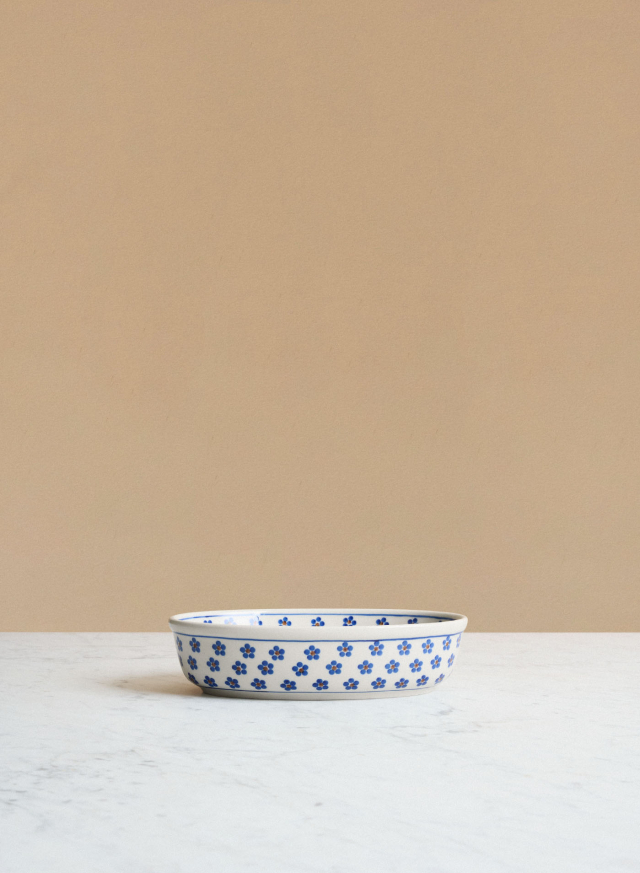 An oven-safe stoneware dish from the Polish brand Ceramika Artystyczna, renowned for its solid craftsmanship and beautifully hand-painted patterns. The hand-painted floral design gives the dish a decorative and inviting appearance.