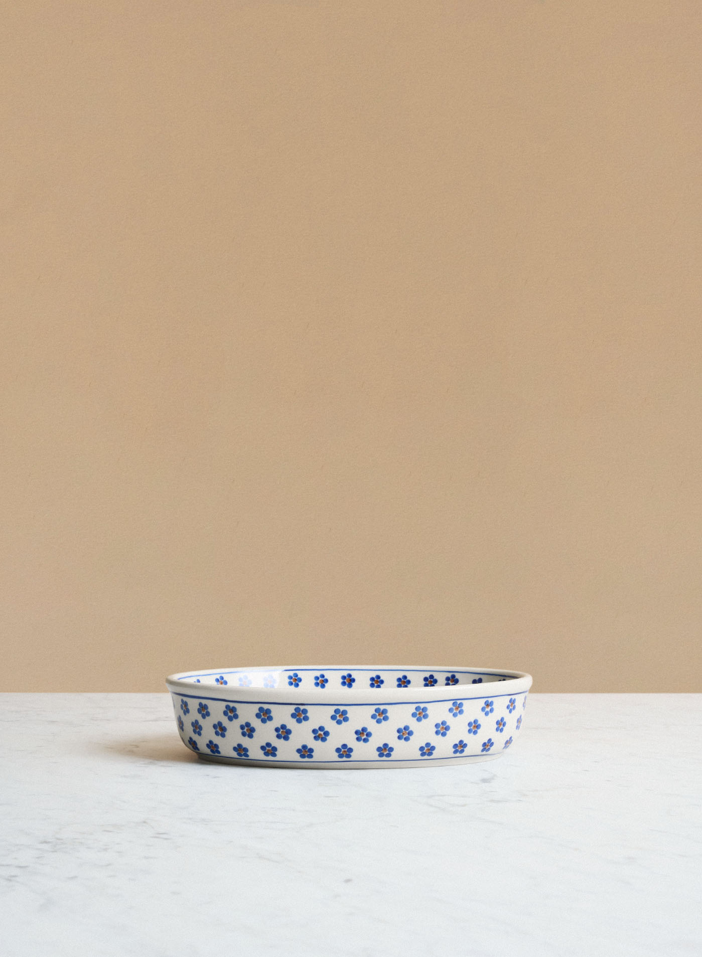 An oven-safe stoneware dish from the Polish brand Ceramika Artystyczna, renowned for its solid craftsmanship and beautifully hand-painted patterns. The hand-painted floral design gives the dish a decorative and inviting appearance.