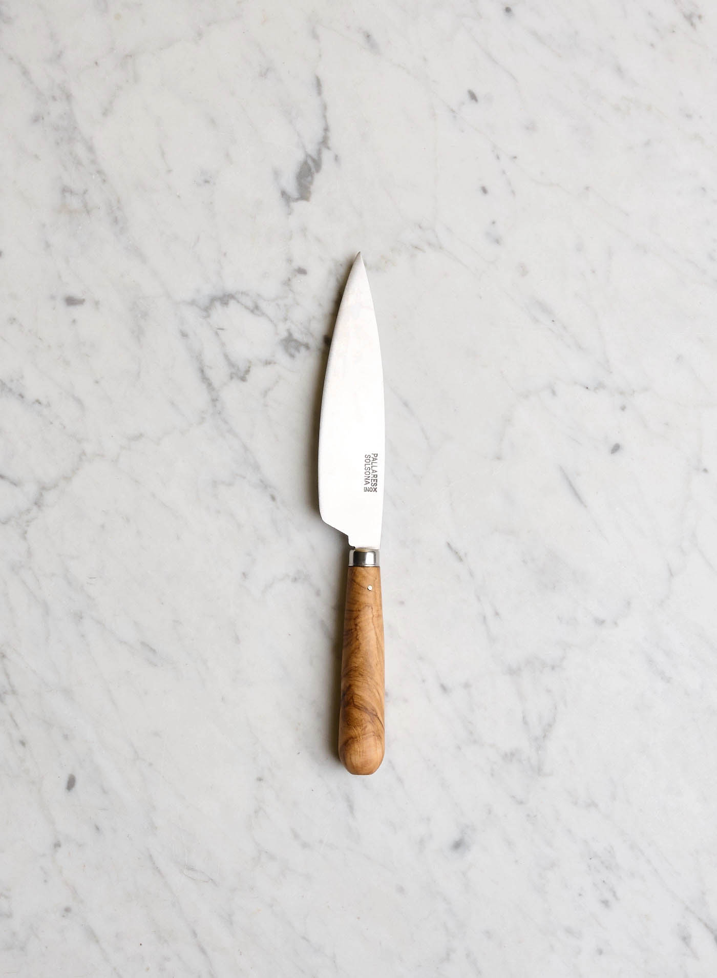 Classic kitchen knife with a stainless steel blade and an olive wood handle. The knife blade has the traditional shape of a paring knife and is still produced in the same way as it was 100 years ago. This compact knife is perfect for small tasks like peeling onions and cutting vegetables.