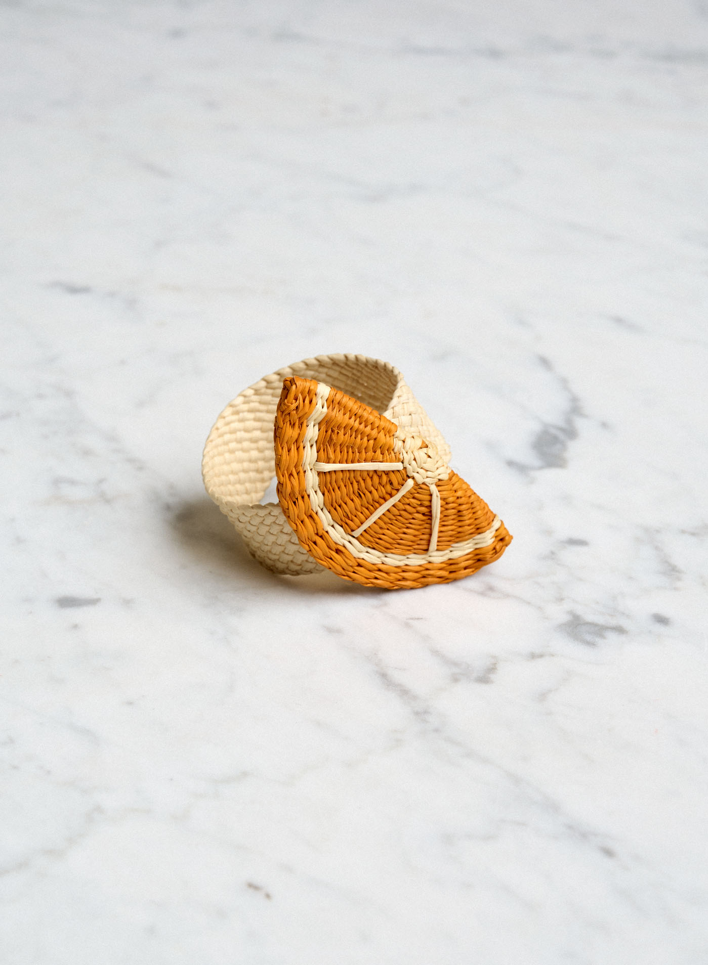 Napkin ring made of straw from Spanish Guanabana. The napkin rings are made by hand by women using a traditional Colombian weaving technique, iraca.