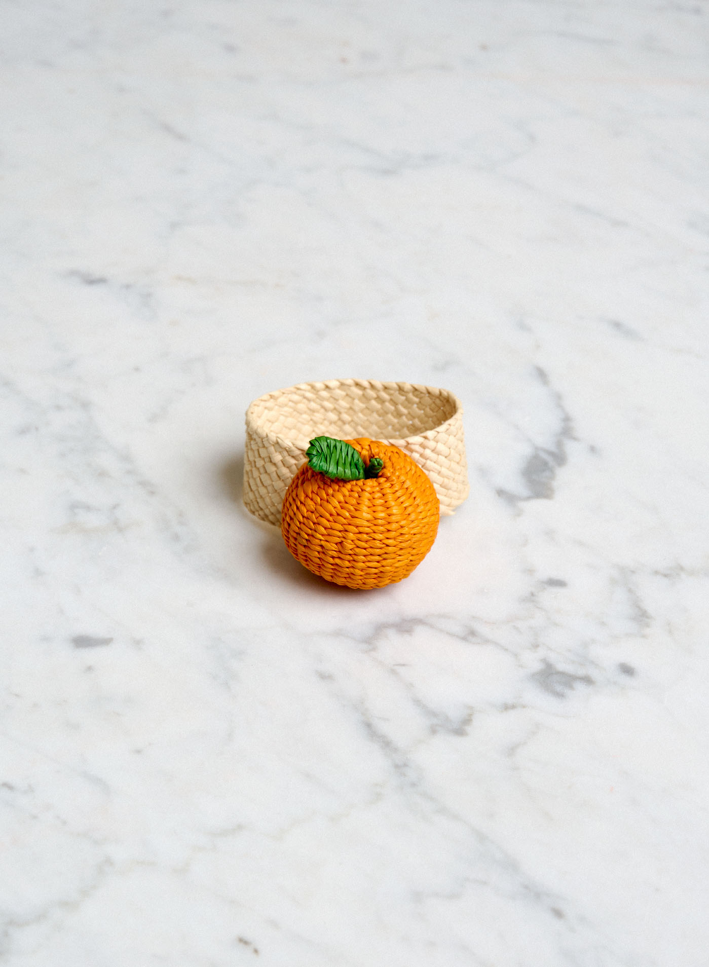 Napkin ring made of straw from Spanish Guanabana. The napkin rings are made by hand by women using a traditional Colombian weaving technique, iraca.