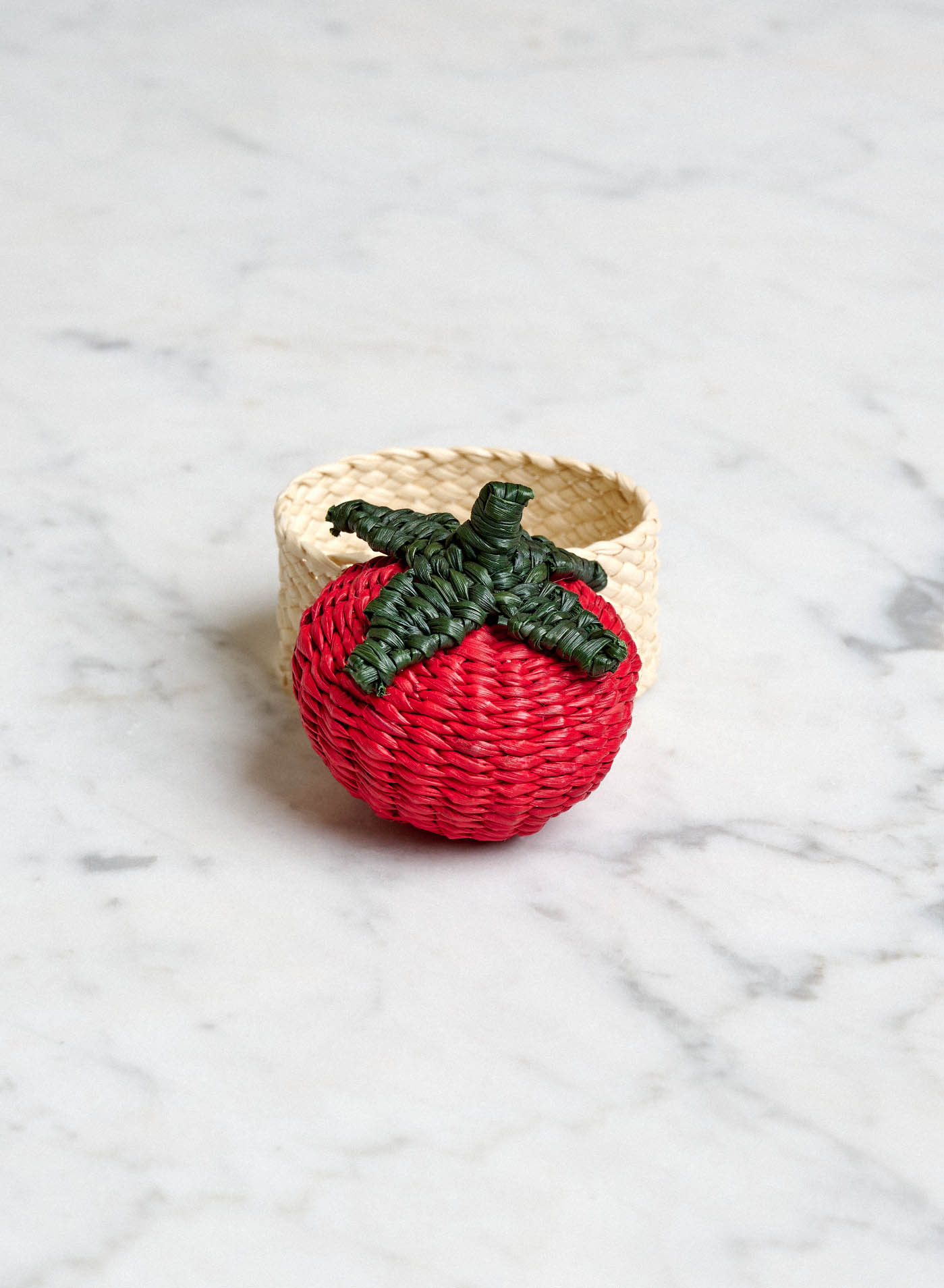 Napkin ring made of straw from Spanish Guanabana. The napkin rings are made by hand by women using a traditional Colombian weaving technique, iraca.