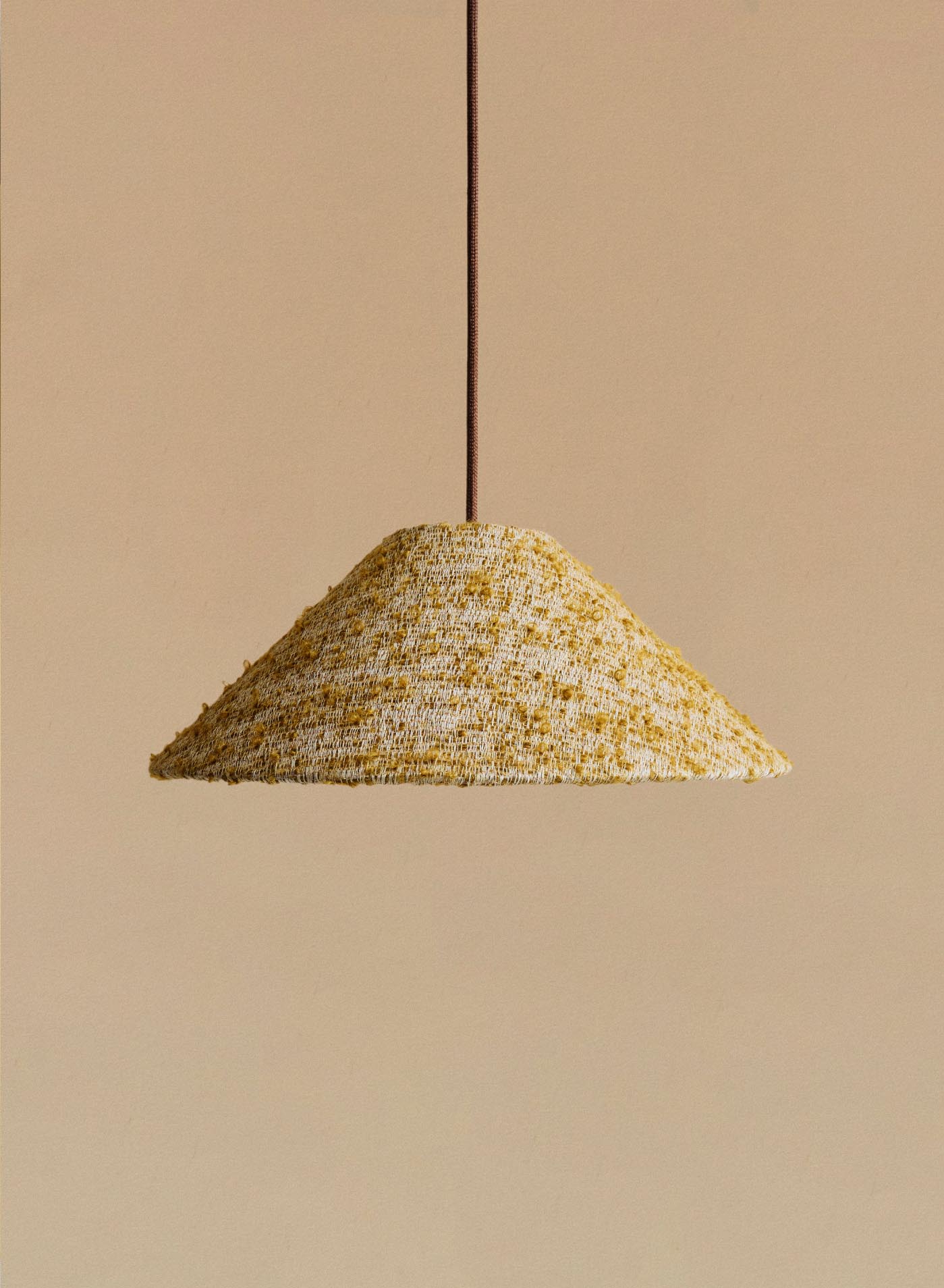 The Ampio pendant lamp is covered in the beautiful Torno fabric from Swedish Astrid Textiles, combined with a braided fabric cord that together create a functional, tactile, and elegant pendant lamp.