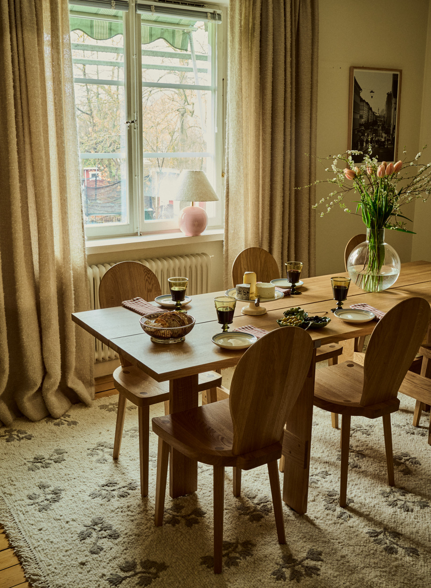 The stripes are painted by placing the ceramics on a rotating plate, controlled by a foot pedal, where light brushstrokes create the delicate stripes while the plate rotates. Each plate is unique, with each brushstroke adding a personal touch and creating variations in the design.