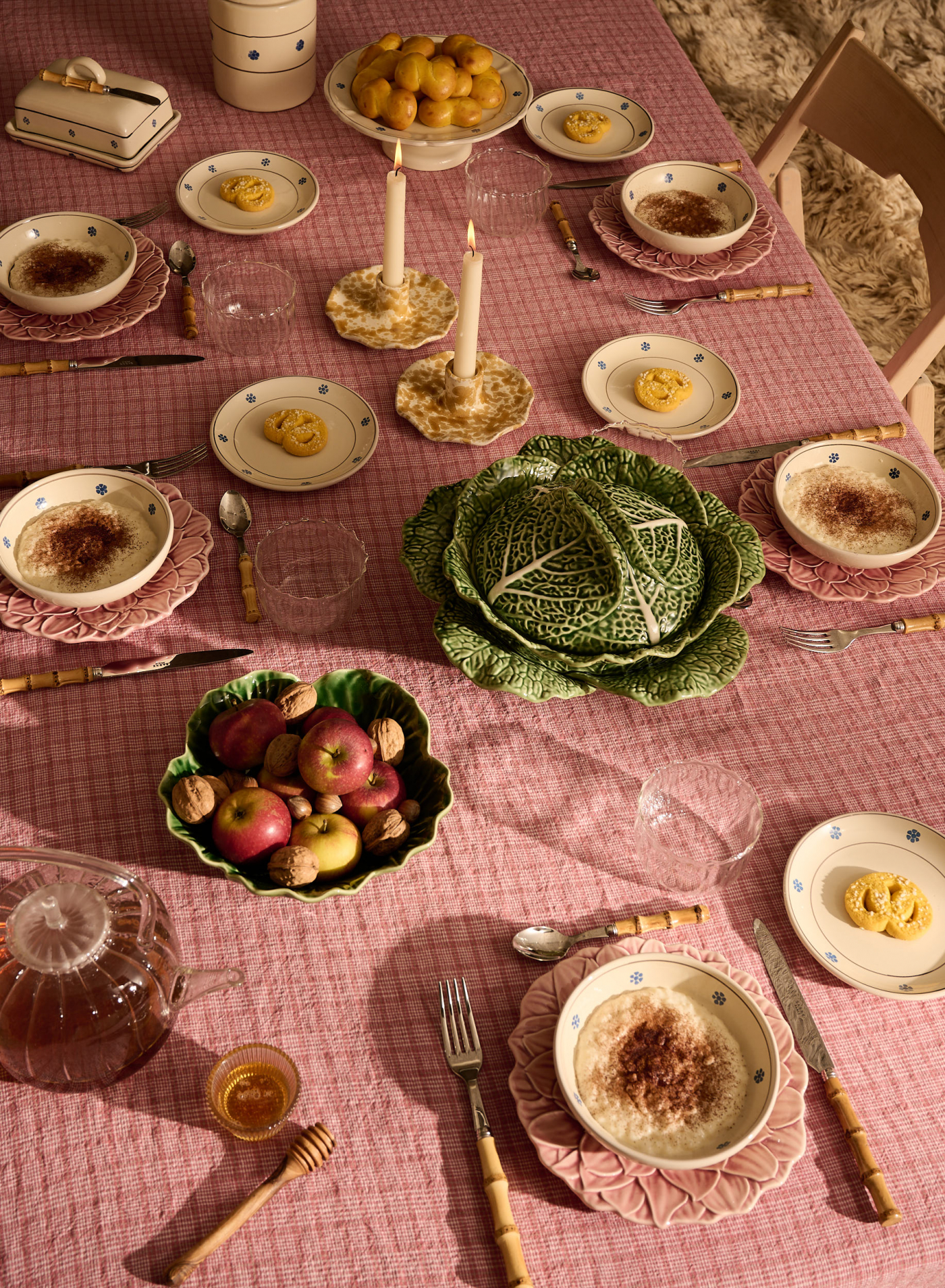 The Tradizionali series is a symbol of traditional Apulian ceramics and can be found in most homes in Apulia. With its hand-painted, characteristic pattern of blue flowers framed by two thin brown lines, the sturdy ceramics provide a rustic touch that immediately brings to mind an Italian family dinner among olive groves and lemon trees.
