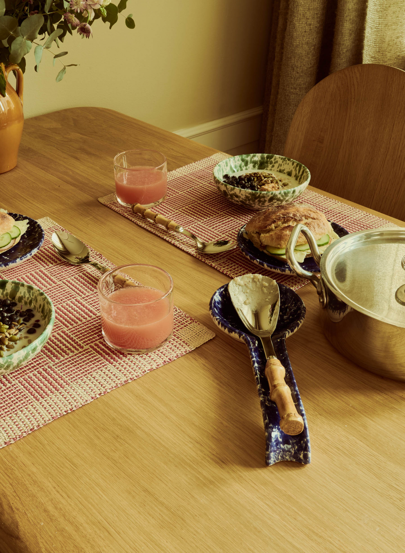 Each spoon rest is handcrafted with a sturdy feel and features a durable glaze that can withstand the rigors of everyday use. The hand-painted surface gives each piece a unique appearance, with subtle variations in color and texture, where small imperfections are a natural part of the traditional craftsmanship."Il Mare," which means "the sea" in Italian, describes this deep blue porcelain series. The porcelain is hand-painted with a so-called splatter pattern, where the blue color is randomly splashed onto the ceramic to create a unique and individual character. In the Il Mare series, a lot of color has been used to almost entirely cover the white base, which still shines through the splashes, creating an exciting character.