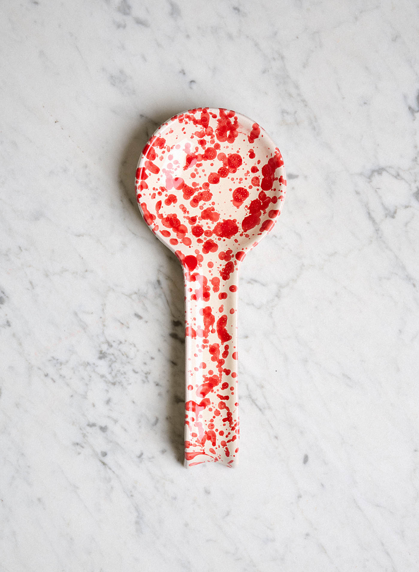 Each spoon rest is handcrafted with a sturdy feel and features a durable glaze that can withstand the rigors of everyday use. The hand-painted surface gives each piece a unique appearance, with subtle variations in color and texture, where small imperfections are a natural part of the traditional craftsmanship."Spruzzi" is an Italian word that means "splashes" in Swedish. Splatter-painted ceramics are a craft tradition typical of the Puglia region in Italy. This technique involves randomly splashing paint onto the ceramics to give it a unique and individual character. The traditional technique has become an important part of the region's cultural heritage and represents a long history of ceramic production in the area.