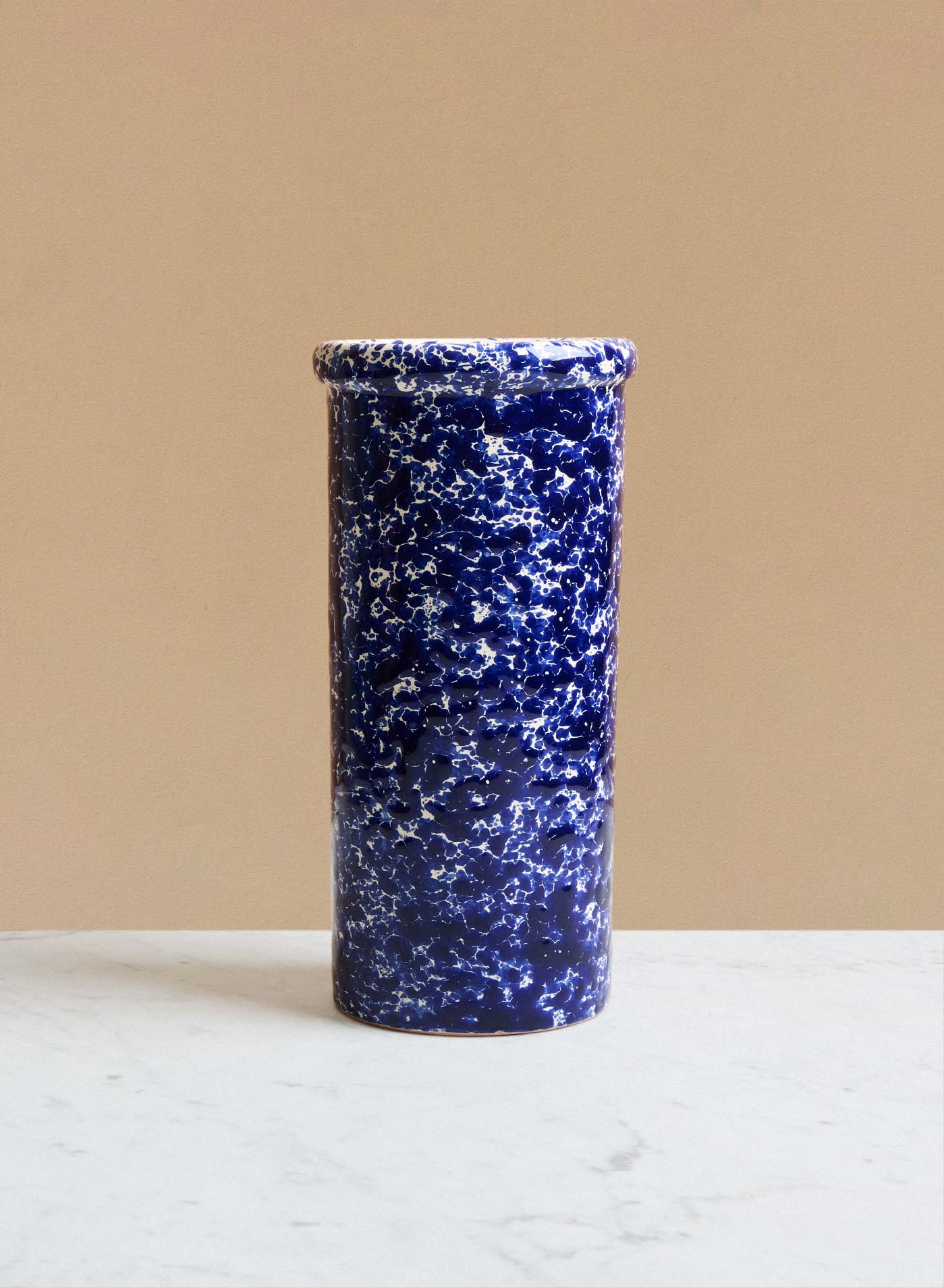"Il Mare," which means "the sea" in Italian, describes this deep blue porcelain series. The porcelain is hand-painted with a so-called splatter pattern, where the blue color is randomly splashed onto the ceramic to create a unique and individual character. In the Il Mare series, a lot of color has been used to almost entirely cover the white base, which still shines through the splashes, creating an exciting character.